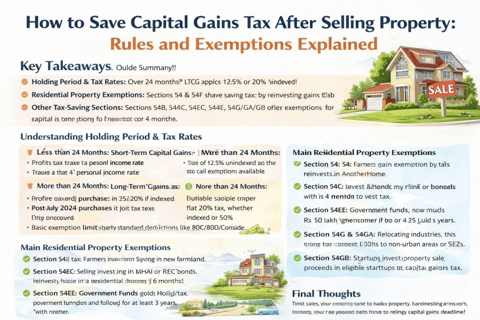 Capital gains tax after selling property can look intimidating—but if you plan early, it’s very possible to save tax legally.